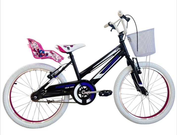 -Cuadro de hierro -Canasto -Cubre cadena -Cubiertas blancas -Modelo nena -Llantas de color -Freno delantero y trasero V-BRAKE -Estabilizadores -Sillita para muñeca