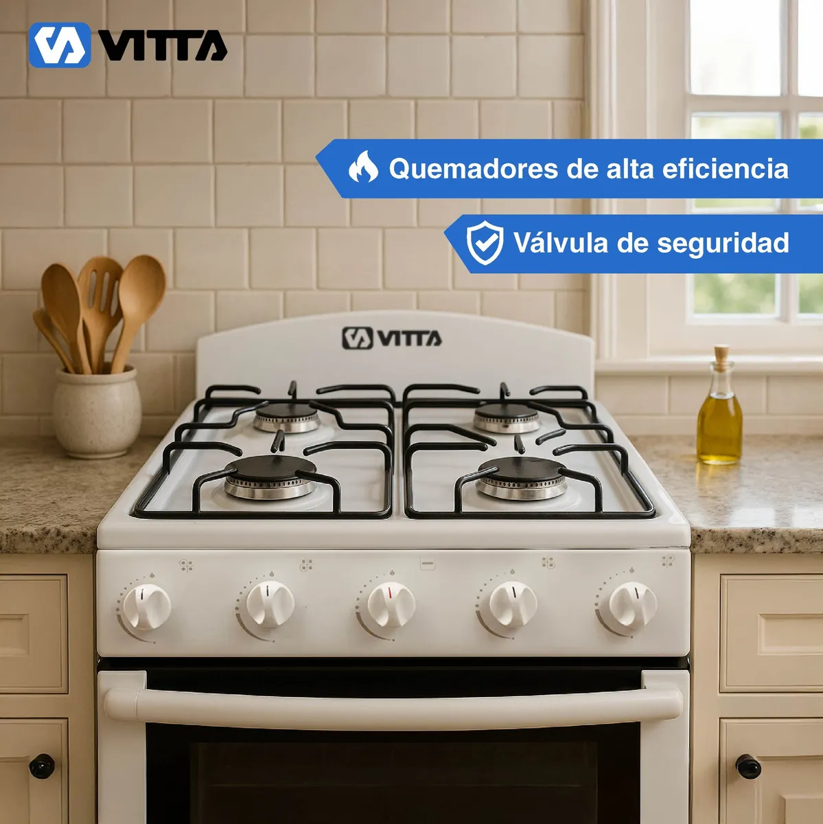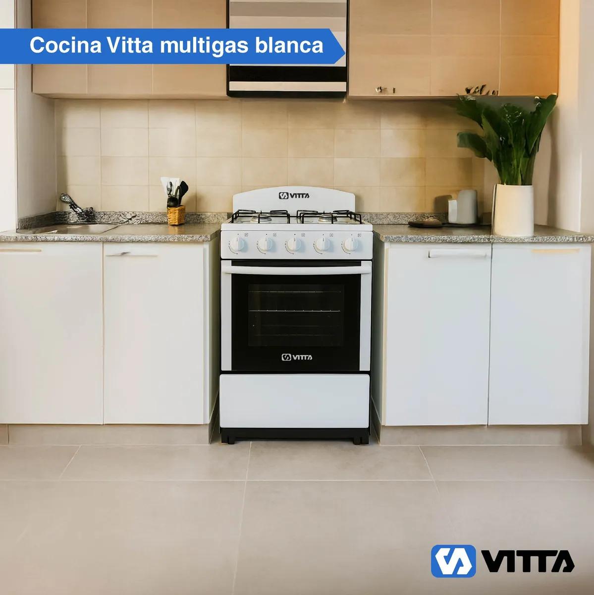 COCINA VITTA BELLA BIANCA MULTIGAS CON 4 HORNALLAS