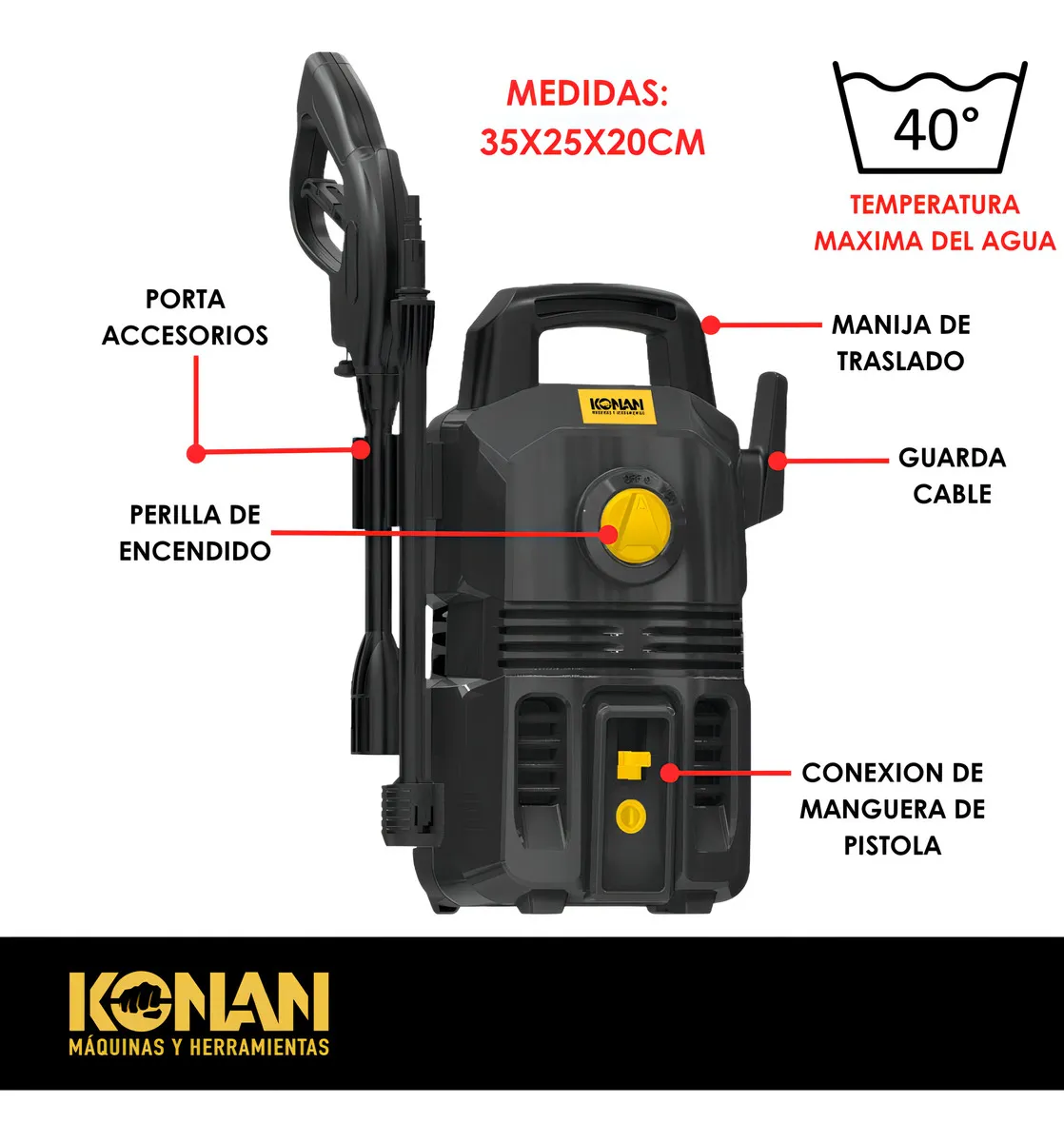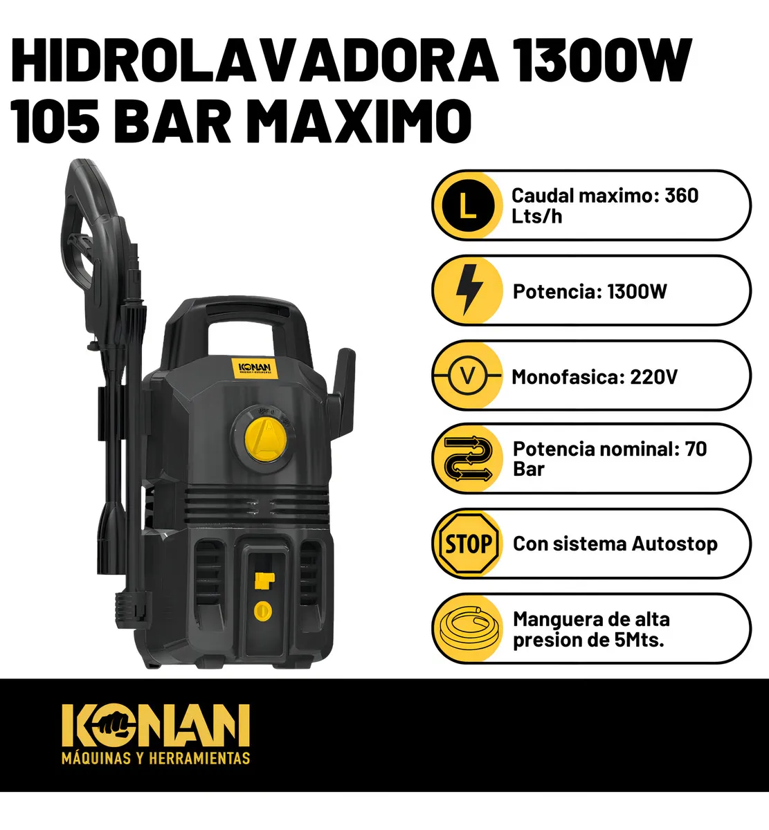 Presión máxima de 105 bar para eliminar suciedad adherida.