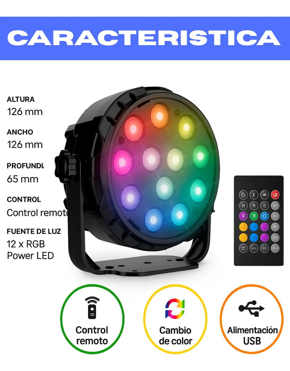 La Mini Proton Luz 12 Led RGB de RELEXTECH es la solución perfecta para iluminar tus eventos y fiestas con un toque vibrante y dinámico. Con 12 luces LED multicolores, este dispositivo ofrece una experiencia visual única, ideal para crear ambientes festivos y animados. Su diseño compacto de 12.6 cm de largo y ancho permite una fácil colocación en cualquier espacio, mientras que su peso ligero de 200 g facilita su transporte.