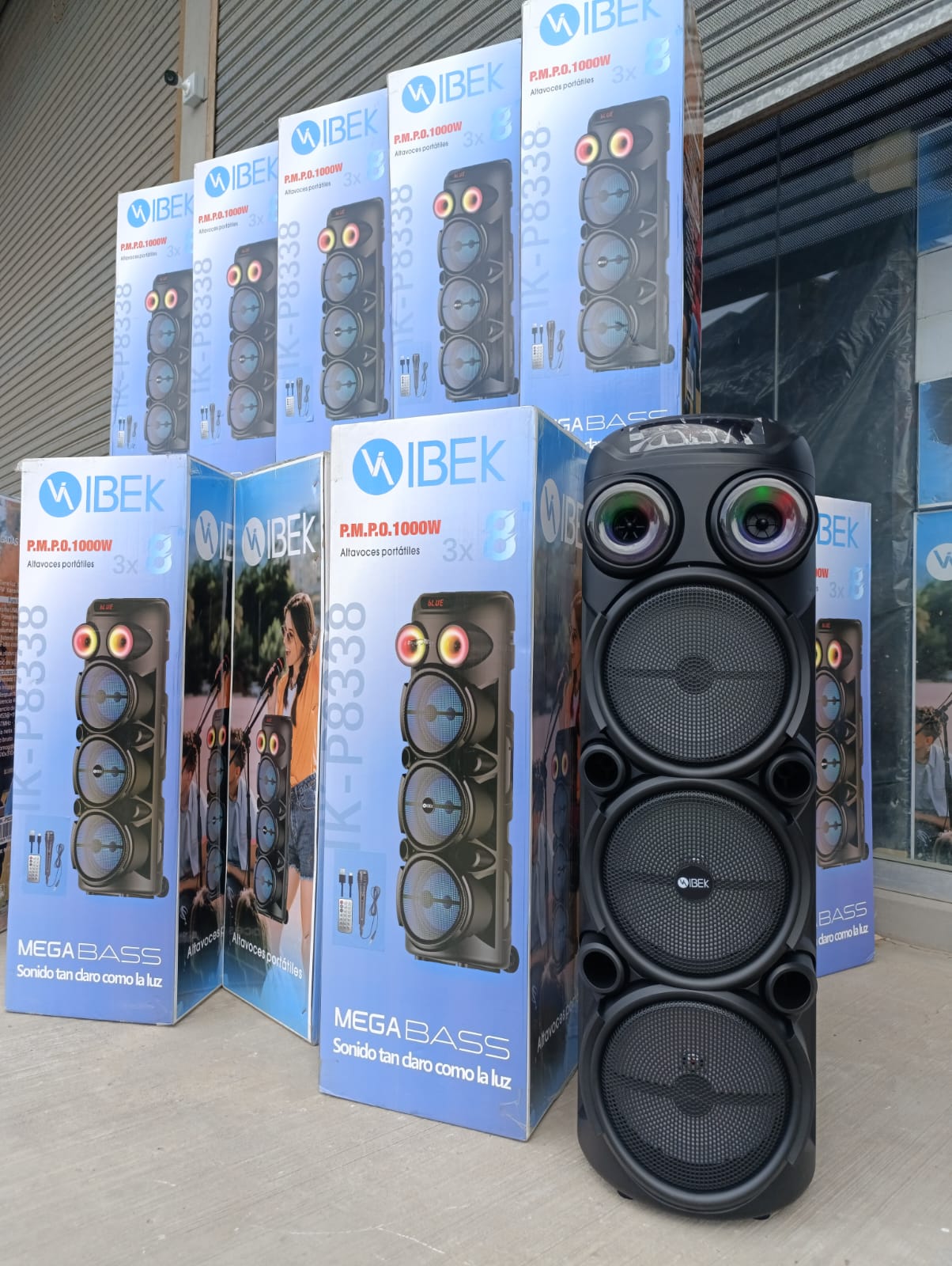 Tiene una potencia P.M.P.O de 1000W y tecnología “Mega Bass” para un sonido claro y potente.