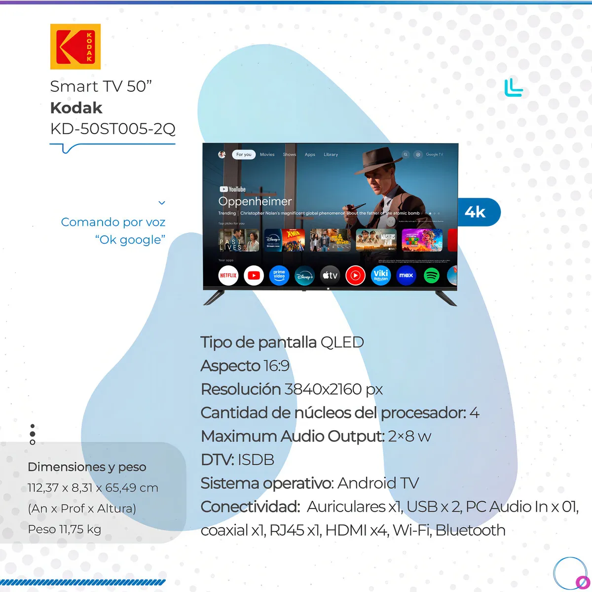 Sistema operativo Android TV con acceso a miles de aplicaciones.